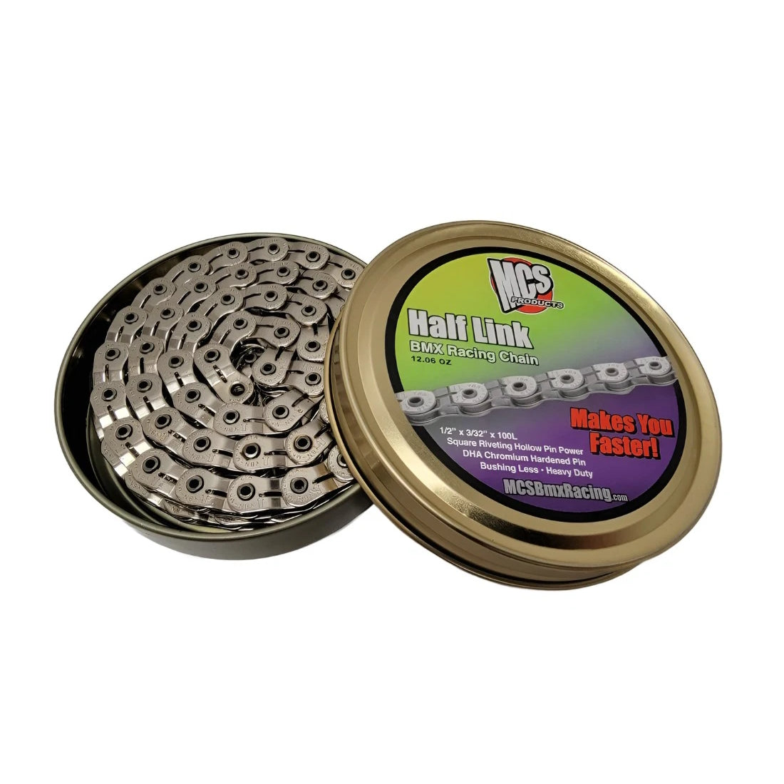 La cadena de carreras BMX MCS Half Link transferirá todo su esfuerzo a la velocidad que necesita para llegar a la meta. Cuenta con :