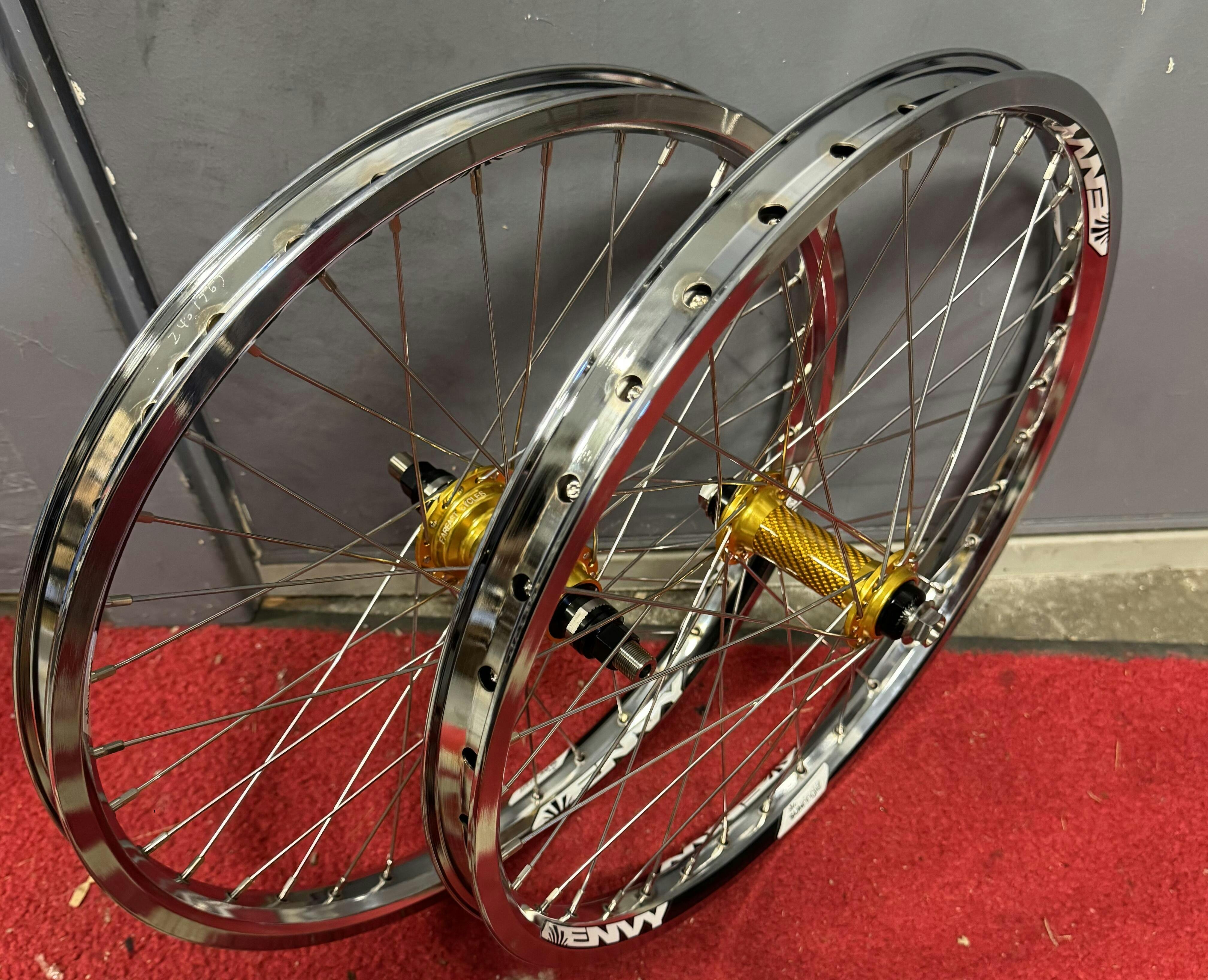 The Sun Ringle Envy rims are inexpensive, lightweight and great alternative to expensive carbon wheels. The metal eyelets prevent spokes pulling trough the aluminum as with other rims in this category. The narrow width of these rims makes the tire profile rounder thus it helps with turbines and tilted rolling/spinning tricks. I have had the same set of rims since 2019 and they are going strong.